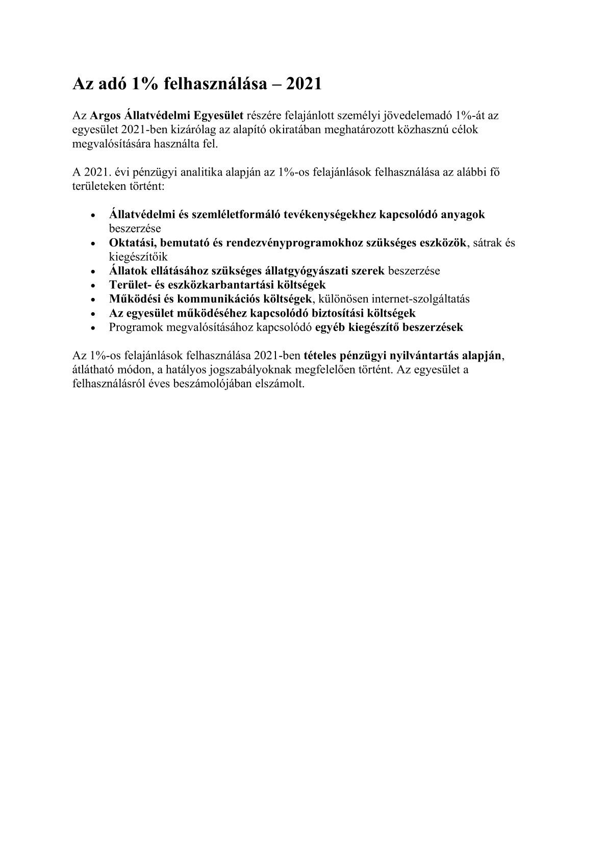 📄 SZJA 1% felhasználási beszámoló – 2021