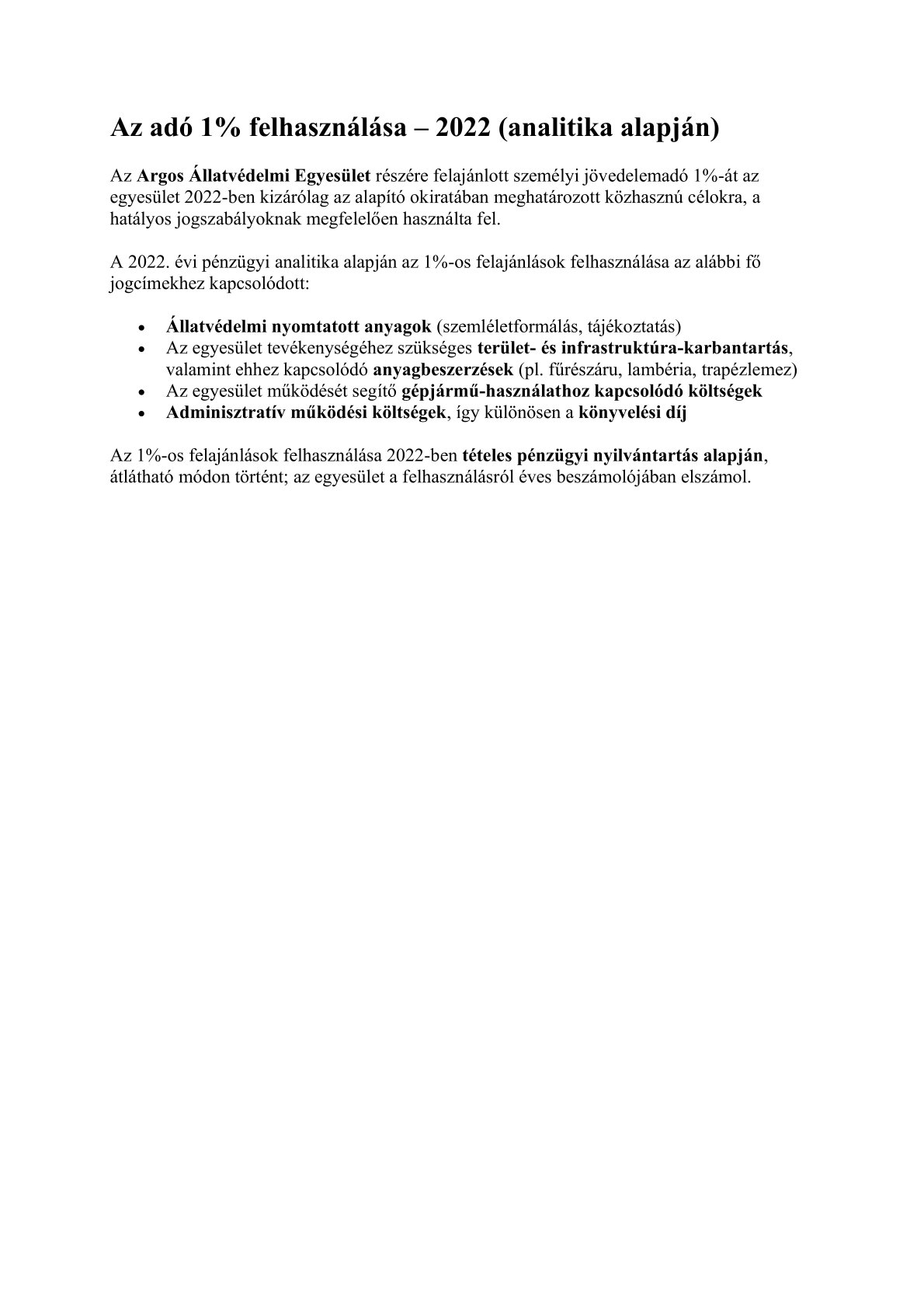 📄 SZJA 1% felhasználási beszámoló – 2022