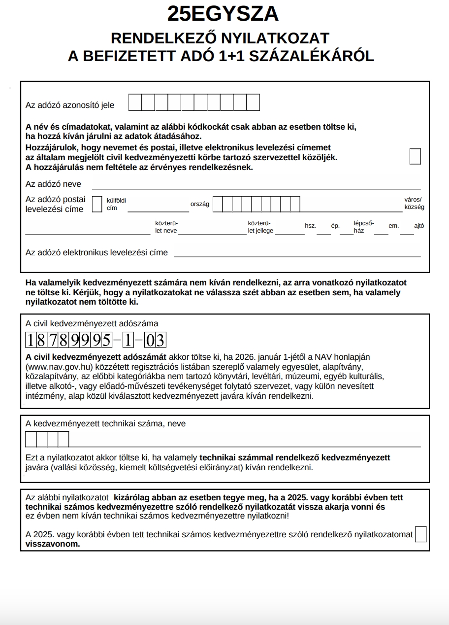 Minden évben január 1. és május 20. között lehetőséged van nyilatkozni arról, hogy személyi jövedelemadód 1%-át mely civil szervezet munkájának támogatására ajánlod fel.